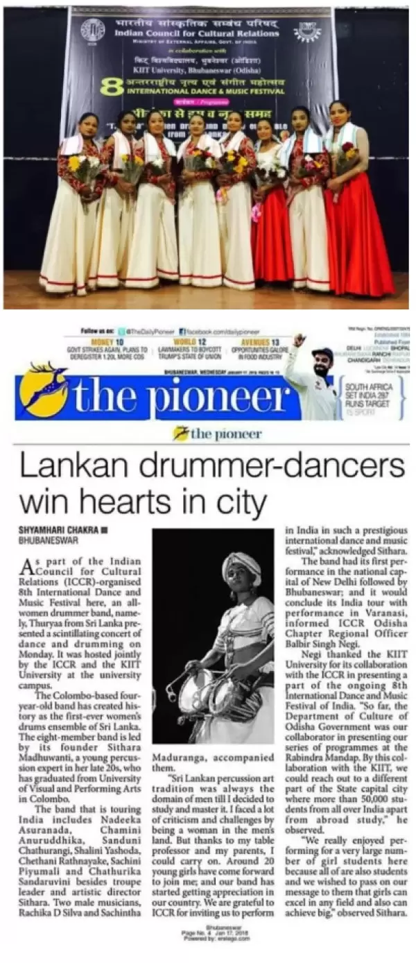 In 2018, Sithara and her all-female drumming group, Thuryaa, were invited to perform at the 8th International Dance & Music Festival held at KIIT University in Bhubaneswar, India.